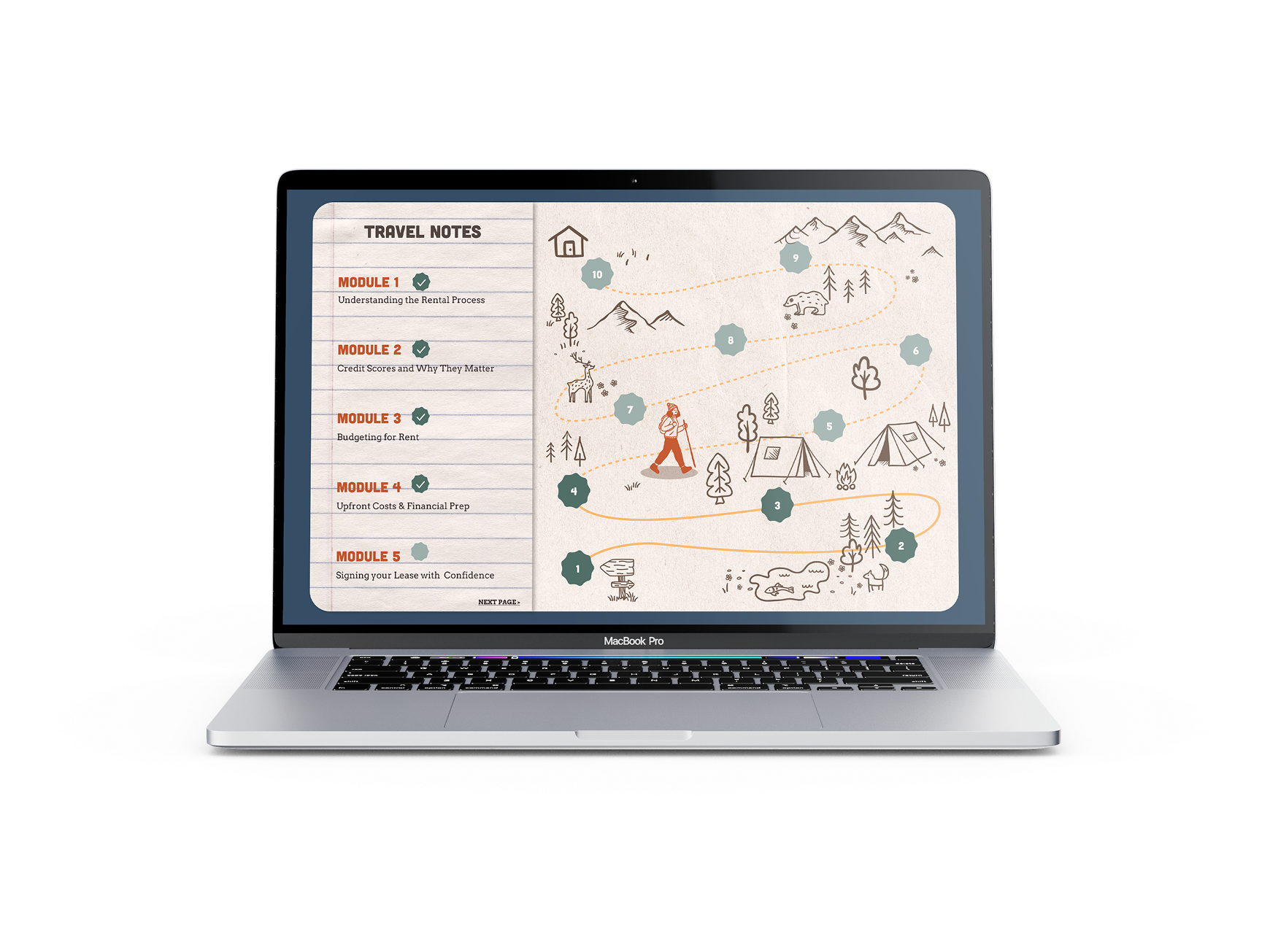 Central to this digital experience is the Pathway platform, an interactive financial literacy course that transforms dense, intimidating curriculum into a navigable “hiking trail.” We have replaced the “mental whiteout” of standard financial resources with a linear, gamified progression where the user’s character physically moves along a path as they master each module. This visual representation of momentum is critical; it provides a clear “Step One” and a defined “Next Peak,” effectively curing the analysis paralysis that often stalls those in housing instability. As users progress through modules on credit, budgeting, and renting, they don’t just consume information—they conquer terrain.